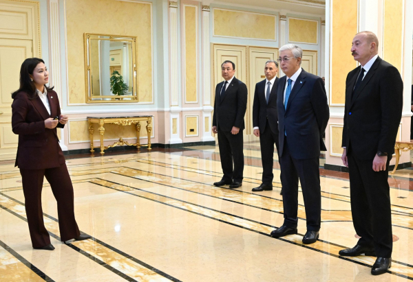 Касым-Жомарту Токаеву и Ильхаму Алиеву презентовали проект «Развитие Среднего коридора», передает DKNews.kz.
